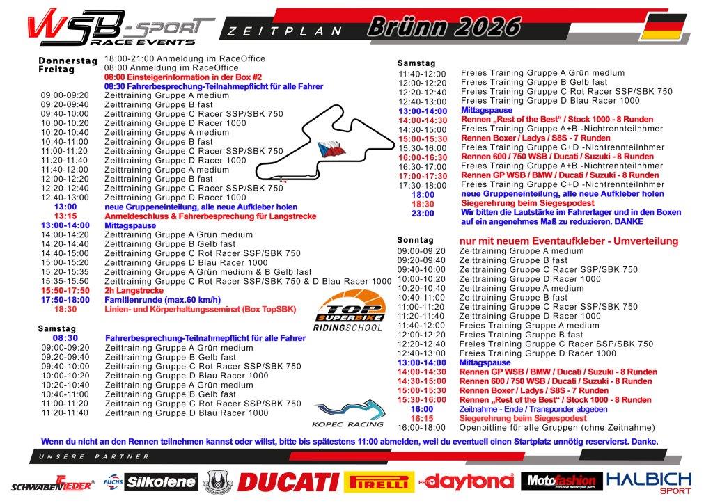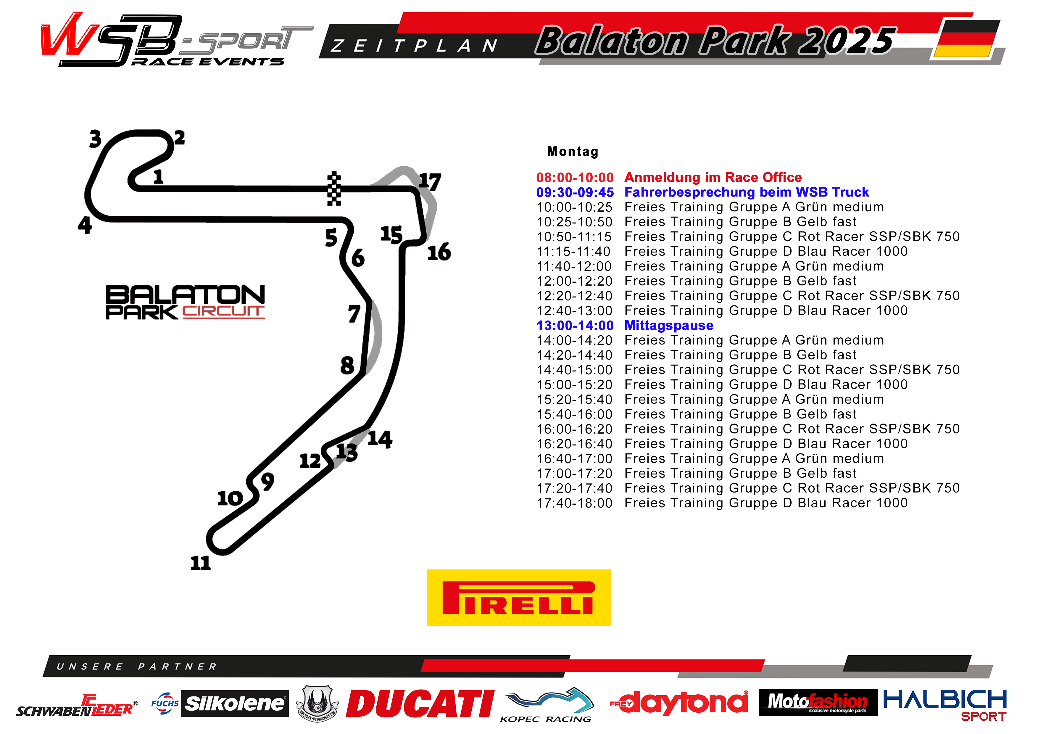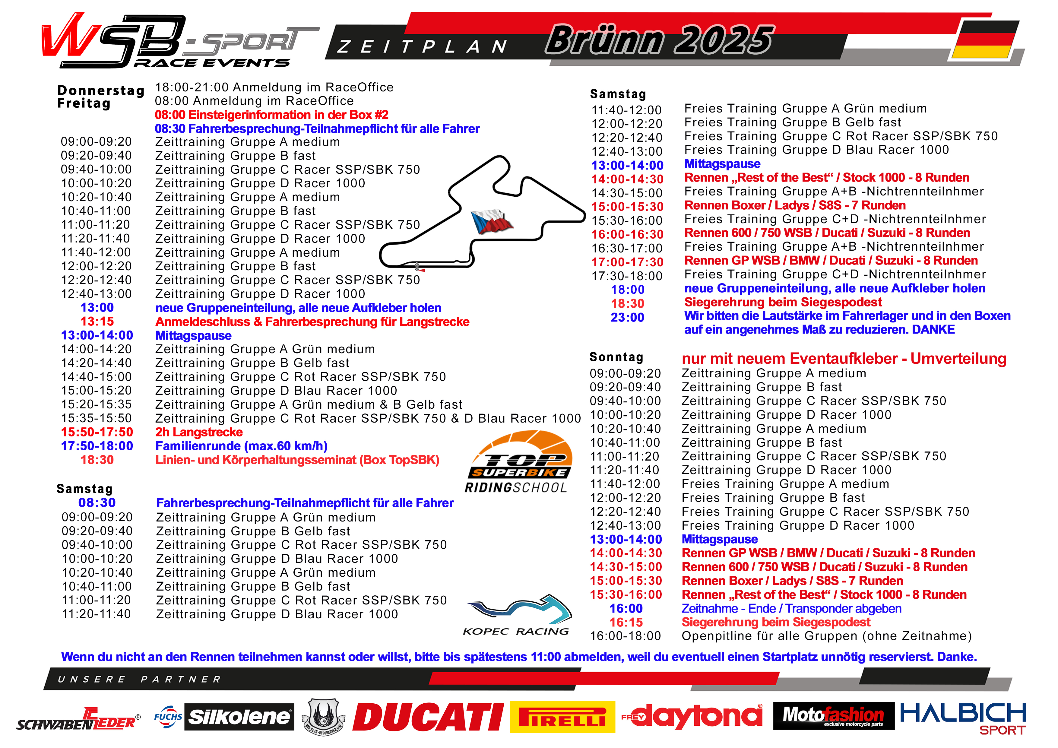 Hier kannst du die Zeitpläne unserer WSB-Race-Events einsehen.
