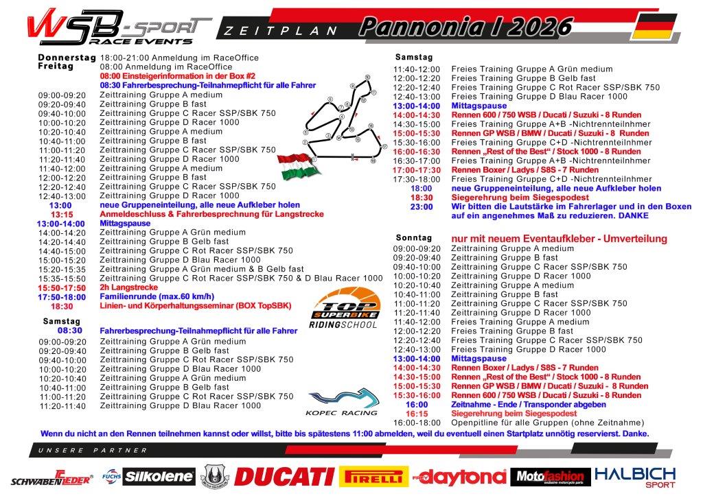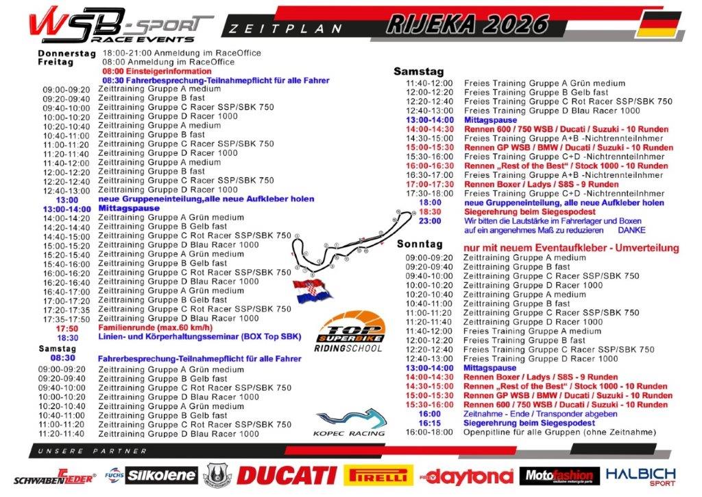 Der endgültige Zeitplan liegt beim entsprechenden Event direkt vor Ort bei der Anmeldung auf.
